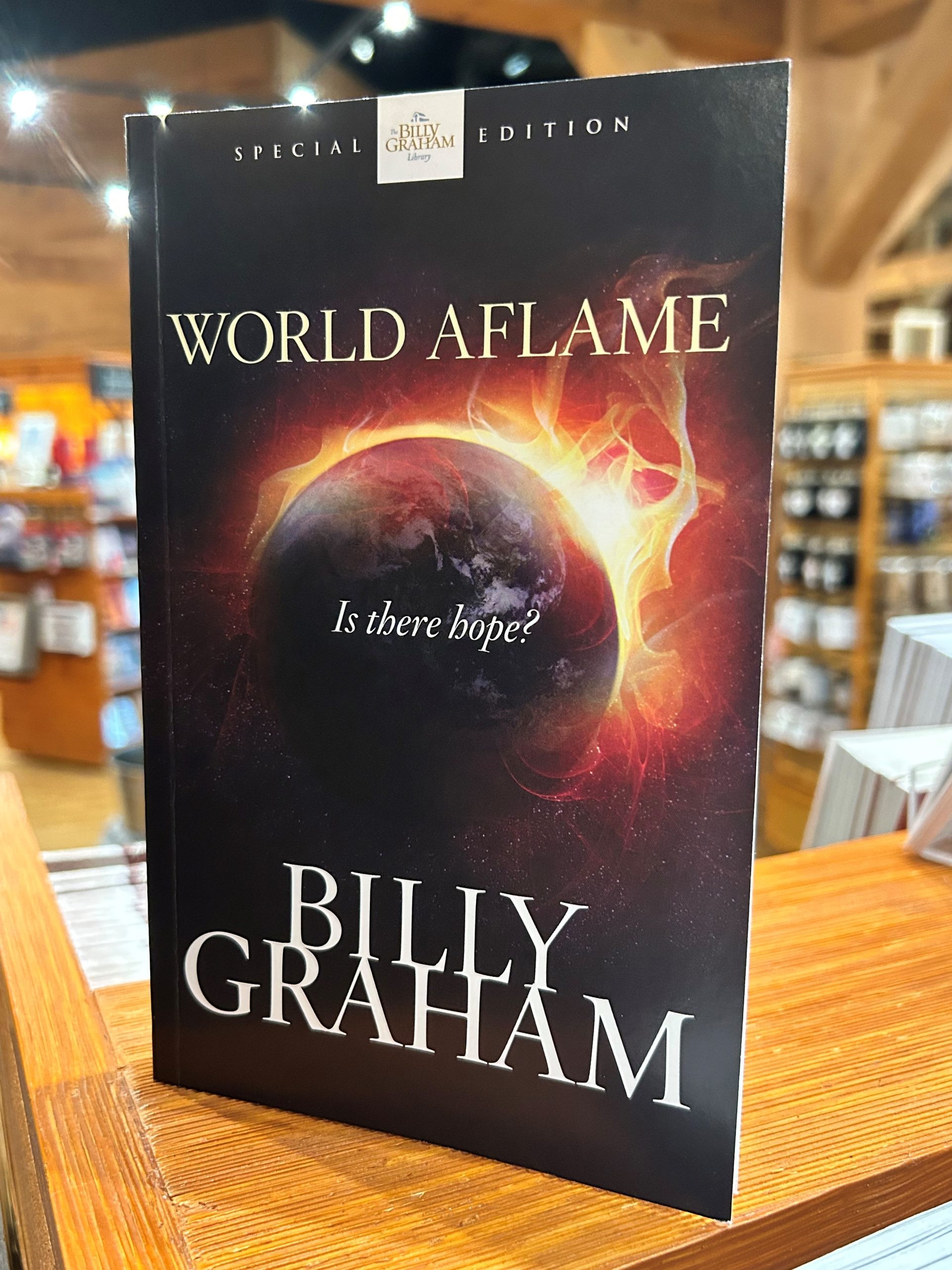 You can read more about Billy Graham’s thoughts related to global and spiritual conflict through World Aflame, which is available for purchase in Ruth’s Attic bookstore at the Billy Graham Library. The bookstore is open Monday-Saturday, 9:30 a.m.-5 p.m.