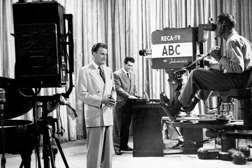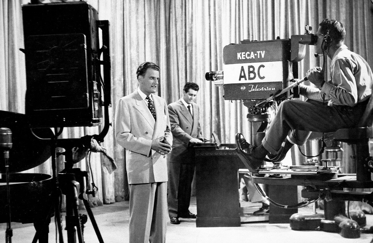 Following historic crusades in Los Angeles in 1949, London in 1954, New York in 1957, and Australia in 1959, Billy Graham became one of the world’s leading evangelists. He used his growing influence to fill stadiums, sharing the Good News of Jesus Christ with millions around the world. He also embraced emerging media, using radio and television to extend the reach of his Crusades to audiences in more than 185 countries.